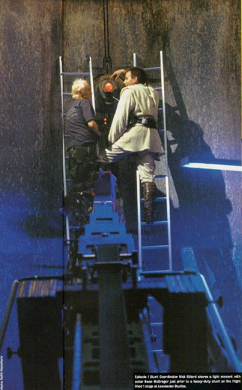 (During the forum) Ewan said that "There is a scene which me and Liam are in a cockpit and we have to frown a lot. We spent hours frowning at the camera with some guy speaking into my earpiece telling me to sit in a different position." He later said, "the fight scenes where immensely boring as you sit around for hours watching two guys hitting plastic sticks together. There is one scene however which I did enjoy. There was about 40 of us charging across a battle field waving our lightsabers or plastic sticks at the--oh, em, I can't carry on...." [Tinman's note: sounds a lot like that one shot in Nick Brandt's latest prequel trailer! Coincidence or not? ;) ]