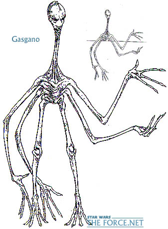 We were told that Gasgano was a tall, thin, pale alien much like the one in close encounters. The difference is that he has 6 limbs with hands at the end of each which he walks on. Reportedly, he is a pod racer. Now check out this passage from the "Star Wars - The Annotated Screenplays" by Laurent Bouzereau. While flipping through the book again for trivia questions, we ran across that same passage again. However, this time we had a little bit more insight into the prequels than we did a year ago, and it seems to have even more significance than we first realized. You know how Lucas doesn't throw away ideas? Well, see if these things from the early drafts of Empire Strikes Back sound a little bit familiar: