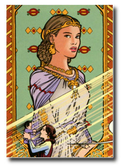 THE QUEEN: Eurasian/Latina girl 13-14. An enchanting young girl, already showing signs of blossoming into a sensual, exotic darkhaired beauty. By contrast, however, she has the reserve, political acumen, poise and bearing of a queen and ruler, together with a natural wisdom and sensitivity that cannot be taught. A strong, spirited, and highly intelligent girl, she is quick to learn the principals of justice and honor. She is a great leader and it is apparent to all.