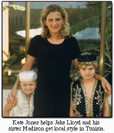 10/9/97 - The above picture came from the Official Star Wars homepage. Madison is on the left and Jake Lloyd is on the right. In the middle is Kate Jones, the production assistant. They are wearing Tunisian Attire, not clothes from the movie. (Thanks to Bradford Jensen for pointing it out.)