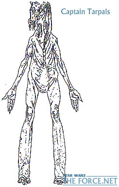Our informants tell us that the alien in the picture is missing the 'dreadlocks' or 'tentacles' we've been hearing about. Interestingly, that is one of the things that will be animated. I assume they are attached to that bulb on the back of his head. They apparently reflect the mood of the Gungan. If they are suprised, they stand up comically in all directions. Other times they simply move around. Kind of like the tail of a cat. The motions reflect the mood.