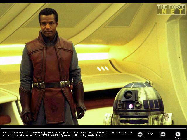 "In Episode I, Quarshie plays the steely Captian Panaka, who serves as chief of security - and personal protector - to the young Queen. As the story unfolds, Panaka becomes increasingly instrumental in the ensuing adventures."