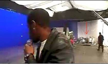 Another exciting thing that can be seen during this very short video is what I believe to be a Jedi. (On Ahmed?s right in the background I highlighted him with a red arrow.) This definitely looks to be a Jedi in the traditional brown robe. It is mentioned while Ahmed is interviewing Nick that they are preparing to shoot a scene in which 8 people are blown up on a ramp.