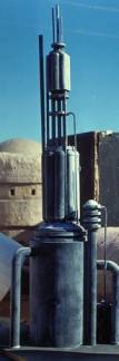 At the very end of this clip I think we see a piece of the set! It does not look like any film equip I have ever seen. My first thought is that this is a moisture evaporator used in moisture farming on Tatooine. It?s difficult to say though because the picture is not the best. I had to lighten and sharpen it as much as I could without distorting it. It could be part of a ship or building as well since it?s elevated about 5-6 feet off the ground.