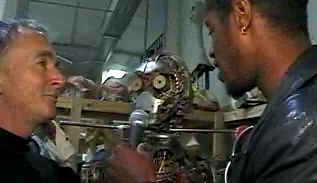 As we all know Anthony Daniels has been the man behind C-3PO for all of the Star Wars films. Ahmed was interviewing him in what seemed to be the workshop for creating props and aliens. The actual location was not mentioned. Anthony described the challenges that he faced for Episode 1 and for Episode 2. In Ep1 C-3PO was a puppet. Anthony did the voice for 3PO? without interacting with the puppet at all. For Ep2 Anthony will be wearing the C-3PO puppet thanks to a harness that they have made for him. He said it?s very difficult because the puppet weighs over a hundred pounds.? From this interview I?m wondering if C-3PO will be wearing his familiar gold skin in Ep2 at some point or will it not be added until Ep3? It doesn?t seem so if Anthony is doing puppeteering as opposed to wearing the 3PO suit.