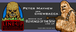 Dallas, Texas-Starting Sunday, April 17th, at the Cinemark Legacy theater in Plano, local club DFW FanForce will kick off their charity line up for the last chapter in the STAR WARS saga. Beginning at 2:00 p.m., Peter Mayhew, the actor who portrayed the beloved Wookiee Chewbacca in four of the six films, including Episode III, will be making an appearance to spend an afternoon with fans.