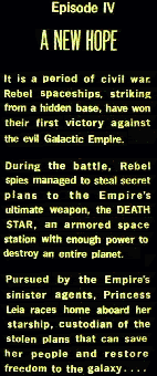 Below are perspective corrected screengrabs from the four opening crawls, showing the actual wording, and the typographic styling used in the movies.