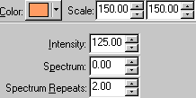 5) Select Glow 2 and set the color to Red: 255, Green: 155, Blue: 102. Set both scale fields to 150 and the Intensity to 125.
