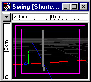 5) Select the lightsabre model and open the Pose Sliders window (ALT+3). As the animation plays, use the "Swing" pose slider to make the sabre stretch out as it moves. If the sabre is moving left, drag the slider between 0 and -100. If it swings right, drag it between 0 and 100. I usually make the back edge of the blade touch the front edge of the previous frame, as shown below.