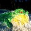 "What else to do with a pile of snow and some food coloring. With help from my son Owen and our dog Indiana! I would make a slave leia. But my wife wouldn't allow it!" (Thanks Mitchell!)