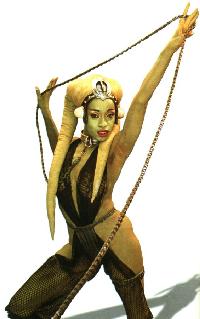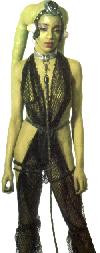 FEMI - The set was incredible. A palace had been made that took up one huge studio space. It was like going back in time. I did not have much contact with the other monsters & aliens because in the original scene Jabba had requested for Oola & the multi breasted fat dancer Yarna to perform. Working with Jabba was quite difficult because he did not know my moves, and a couple of times I nearly got strangled. Every step had to be monitored for the puppetiers who were operating Jabba, so they knew how to give & take whilst I was in movement.