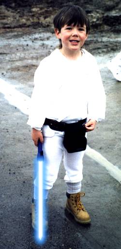 Another brave young Jedi apprentice. That weapon might look like a flashlight, but it's really a lightsaber, so beware!