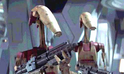 bomb!" The droid seems to use a comlink to contact his superiors.