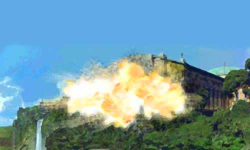 Jar still lies unconscious, the fighter explodes in a huge ball