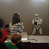 I was able to attend the 5th annual Star Wars Day at the Sterling Heights Public Library in Sterling Heights, MI, and I had a ton of fun. Judging by the reaction of the many kids in attendance, I wasn?t the only one. There were plenty of costumed members from the 501st Legion present and available for pictures, as well as answering questions about all the good work that they do. This was my first real Star Wars fan event, and I was really impressed. Inside the library, there were several activity stations, including a mask making station, two blaster shooting stations, and a booth about the 501st and the Great Lakes Garrison. The blaster shooting stations were the most popular, and the kids? favorite target was the costumed stormtrooper. Kids received certificates for participating and had the opportunity to enter a raffle for either Dark Side or Rebel Alliance prizes.