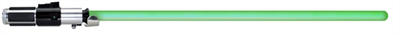 ? An enhanced glowing green blade with realistic power-up and power-down light effects. The power-up and power-down light effects are produced by a string of 64 super-bright LEDs that ignite sequentially inside the blade.