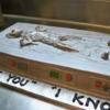 First we offer up a warm TFN congrats to Randy T. and his new bride. The happy couple were just married on August 15, 2010 and their Frozen Han wedding cake says it all.