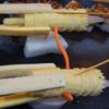 Veggie carving extraordinaire Oki returns (rather quickly after his last submission) with what might be his best creation yet. Behold, the sweet potato podracer featuring Anakin as the pilot! Click on the images for full views and see the related links below for more Star Wars veggie carving creations.