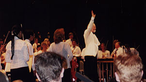 He bowed to one side, bowed to the other, turned to the symphony, and got ready to start. He picked up his baton and they came to attention. Now going to a concert is, of course, a very visual and sound oriented experience. It is very hard to put into words. But in all honesty, it sounded exactly like cranking up your stereo and listening to a CD. Every note was as perfect in person as it was on the recording. The only difference is that when they are playing in front of you, you can pick out certain instruments and isolate their sound. Since I can't describe the music, you'll have to settle with what I saw.