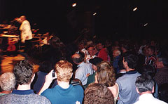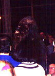 But wait! The house lights come up! Williams turns around and they crowd starts making noise! Suddenly Chewbacca was walking through the crowd! Ack! I just ran out of film! I tried to reload, but couldn't get it to work! Oh, no! My wife takes the camera from me and properly loads it. I take it from her and snap these pictures just as Chewie walks by!