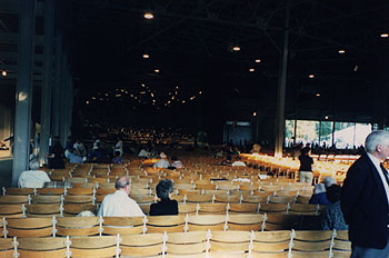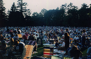 Anyway, I won't bore you with the details of how we got there. I'll just pick up the story 3 hours before concert time. I was a bit eager to get there without any mishap, so I dragged the little lady to the Tanglewood concert area. We had a picnic on the lawn outside the grounds before they let us in the gate. Now they have a huge outdoor shed where the concert would take place. People buy tickets in advance for reserved seating there. That's where we sat.