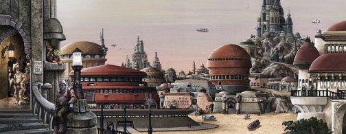 From the several Rodian and Human settlers sprouted the spaceports of Mos Eisley, Mos Espa, Mos Taike and Mos Entha. The official capital city and center of government is the town of Anchorhead, but Mos Eisley is the more frequently visited. Besides attracting interstellar commerce, the city attracts social undesirables from the space lanes and other walks of life.