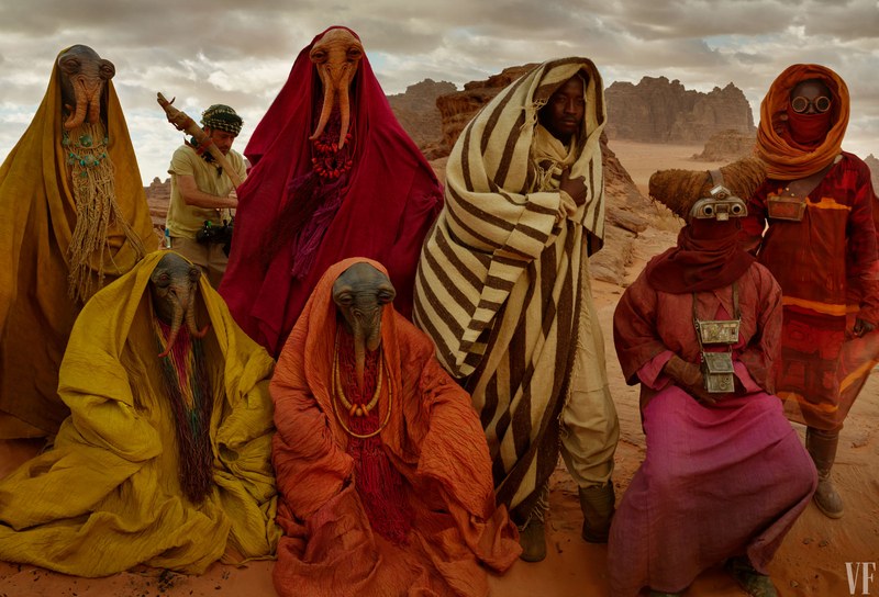 But in a way that’s the whole point: you’re out there so the world can get up in your grill and make its presence felt on film. “It’s the things that you can’t anticipate—the imperfections,” says Oscar Isaac, who plays the Resistance pilot Poe Dameron. “It’s very difficult to design imperfection, and the imperfections that you have in these environments immediately create a sense of authenticity. You just believe it more.” When Isaac arrived in Wadi Rum for his first week of shooting, Abrams had set up a massive greenscreen in the middle of the desert. “And I was like, ‘J. J., can I ask you a question? I notice we’re shooting on greenscreen.’ And he’s like, ‘So why the hell are we in the desert?’ And I’m like, ‘Yeah!’ And he said, ‘Well, because look: the way that the sand interacts with the light, and the type of shots you would set up—if you were designing the shot on a computer you would never even think to do that.’ There’s something about the way that the light and the environment and everything plays together.” It’s that something, the presence and the details and the analog imperfections of a real nondigital place, that makes Star Wars so powerful.
