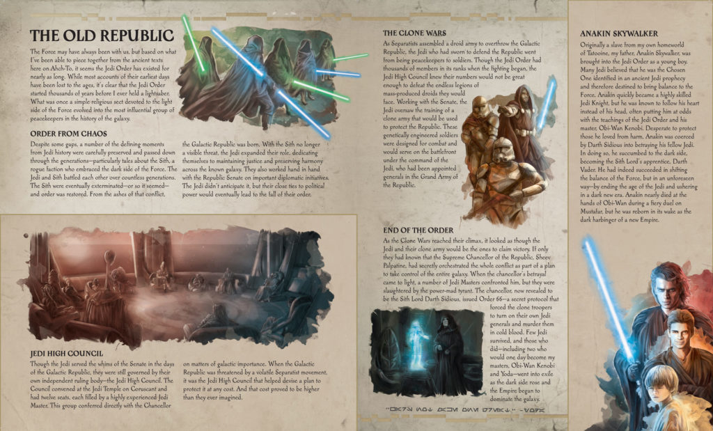 Today, Star Wars dot com revealed their all-new interactive reading experience, Star Wars: The Secrets of the Jedi, a new book from author Marc Sumerak chronicling the history of the Jedi Order. Published by Insight Editions, the book is filled with lush paintings and special interactive features, including a pop-up holocron, a translator card, a Jedi equipment booklet, and more. Best of all, your guide on this journey through time is none other than Luke Skywalker himself!