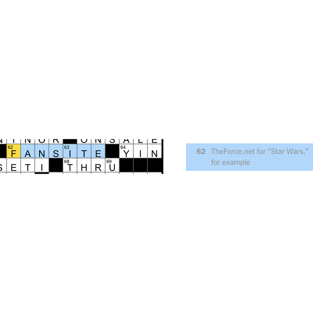 That's right. For those that do The Crossword that's featured in The New York Times newspaper, today's puzzle features the clue "TheForce.net for "Star Wars" for example.", and the answer is "FANSITE". After being around for nearly 30 years, it's fun to see the site being recognized like that.