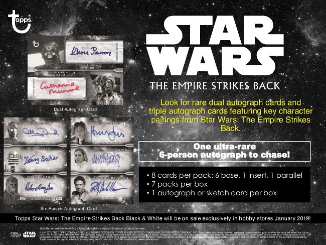 It looks like retailers are now placing orders for Topps Star Wars Black and White: The Empire Strikes Back hobby box which will available exclusively in hobby shops in January of 2019.