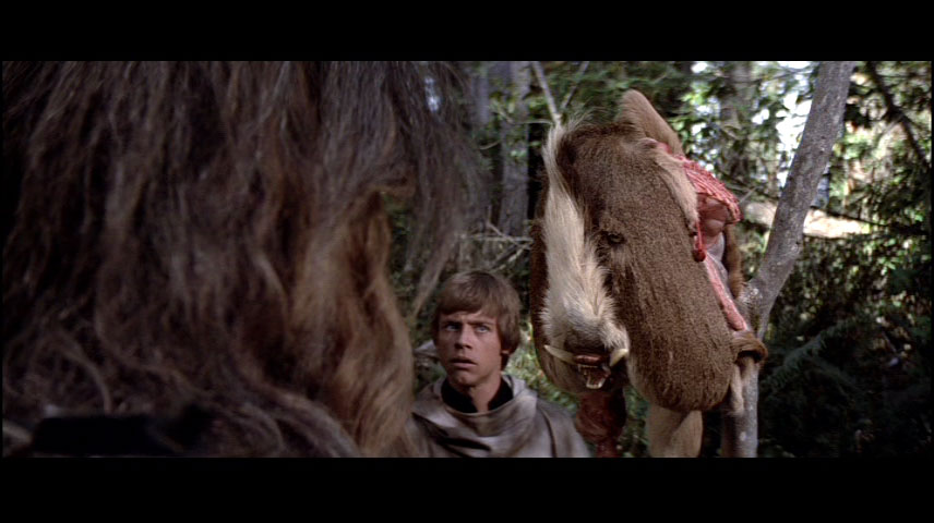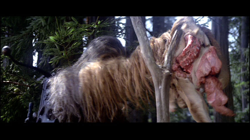 Several different views of the mutilated remains of the tusked animal, used as bait in a trap created by Ewoks.