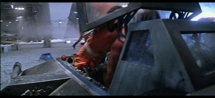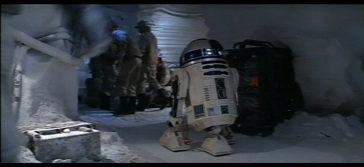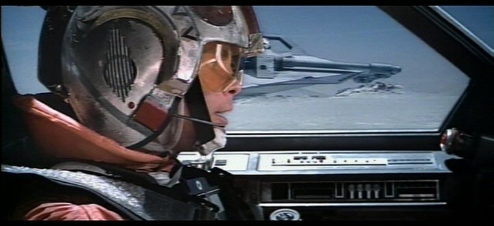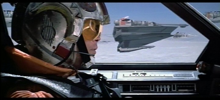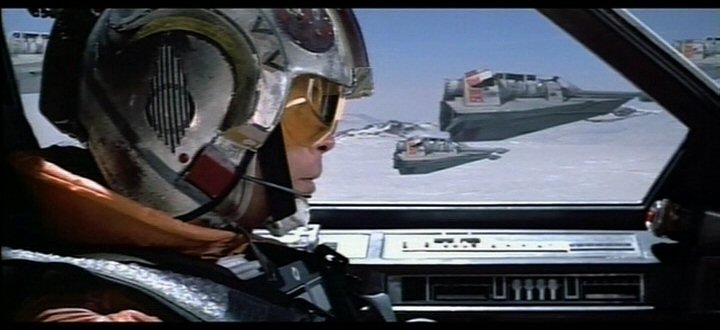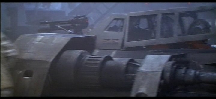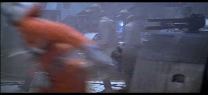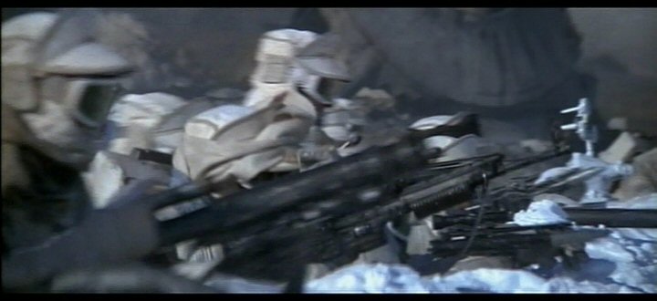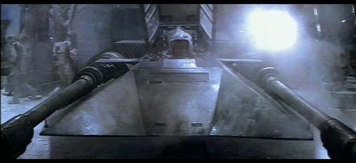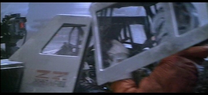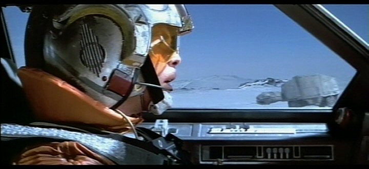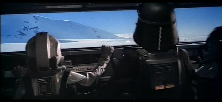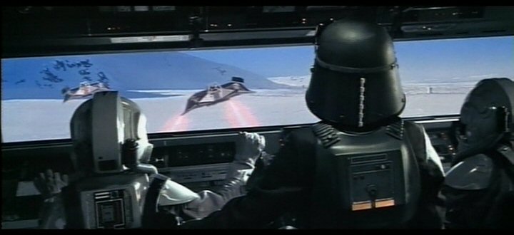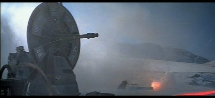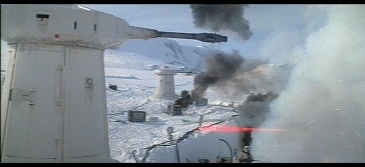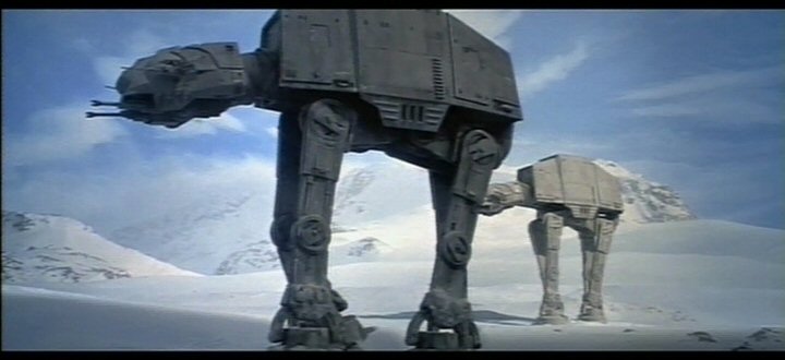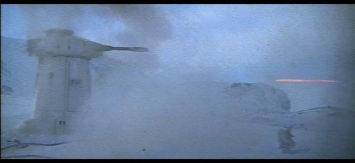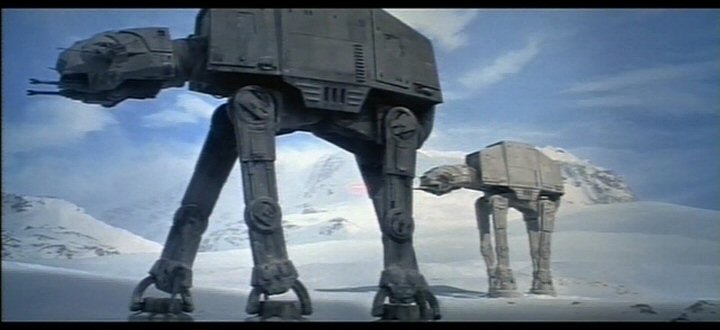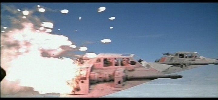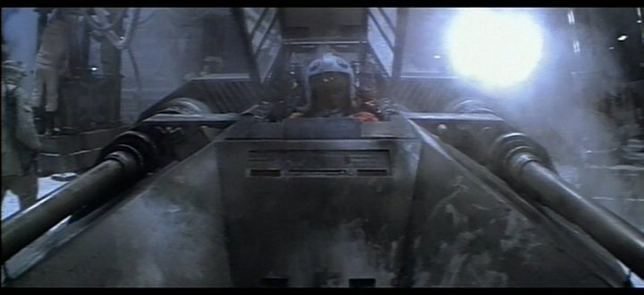 During the distraction another snowspeeder, Rogue Leader, passes between the walker's legs.