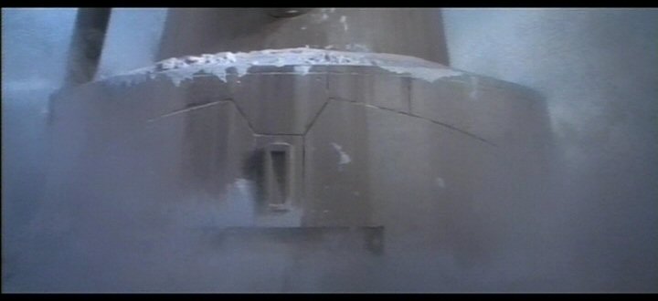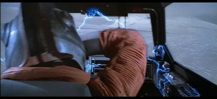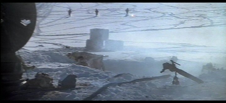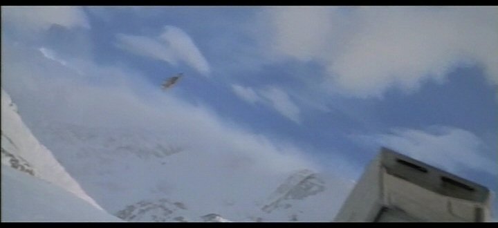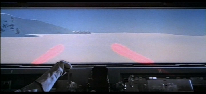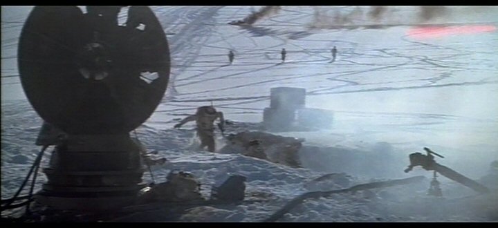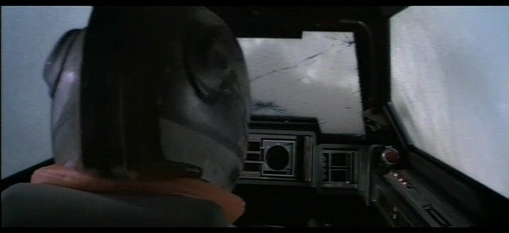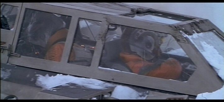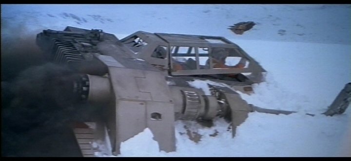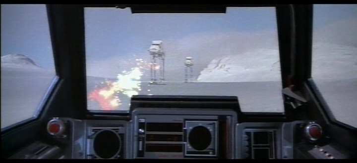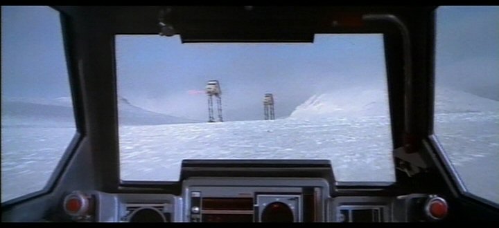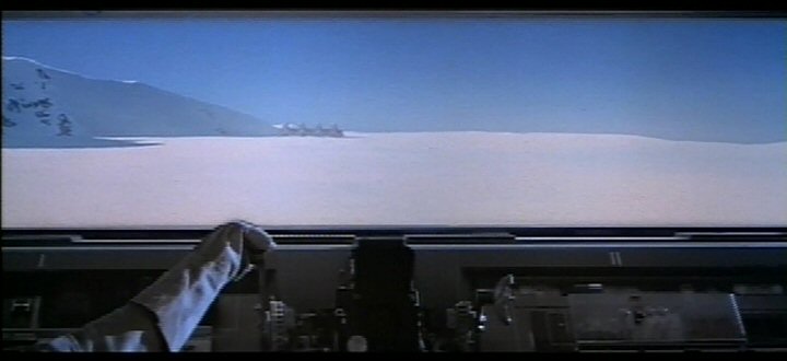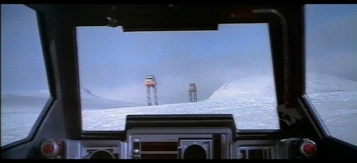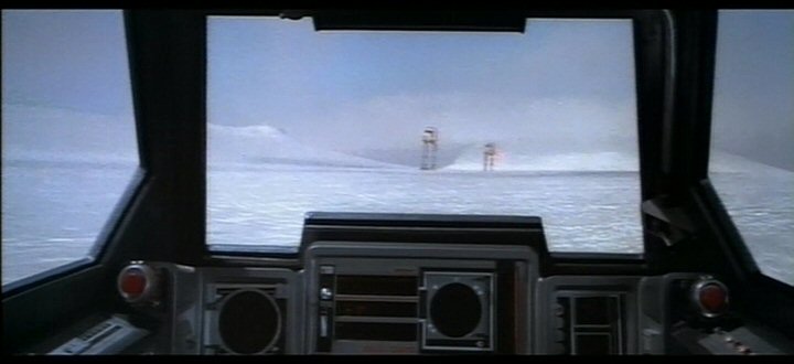 Luke's snowspeeder cockpit during his crash. In the background beyond the ice plain we see the western hills. |