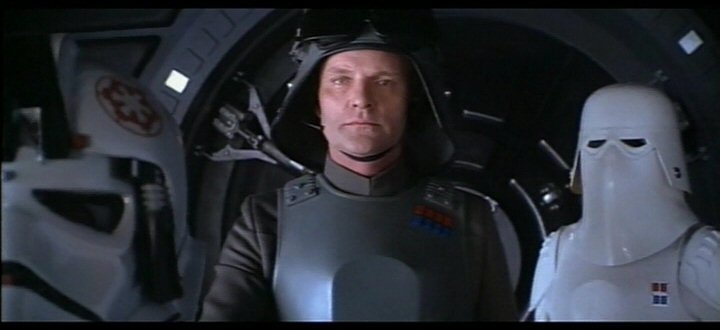 General Veers gives debarkation orders to an armoured stormtrooper officer. The officer's insignia are equivalent to a naval lieutenant, which is equivalent to an army captain. |