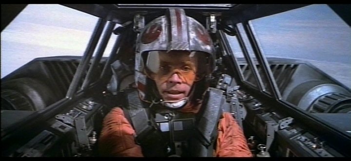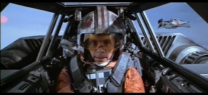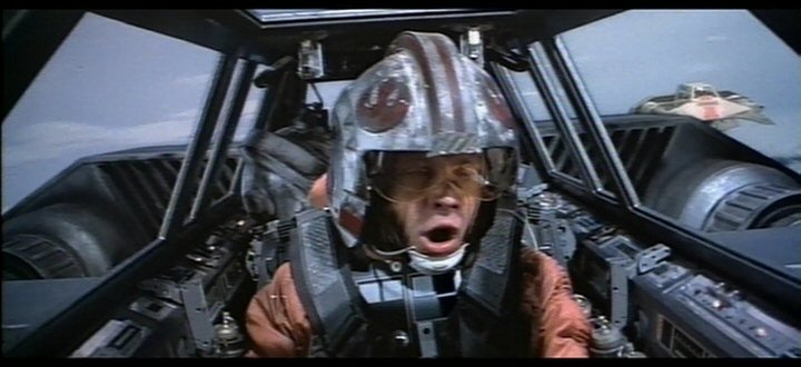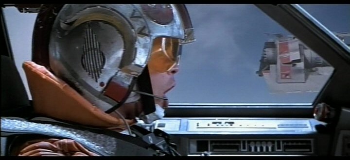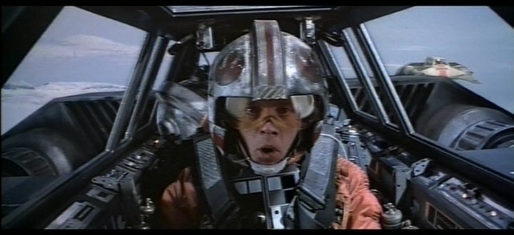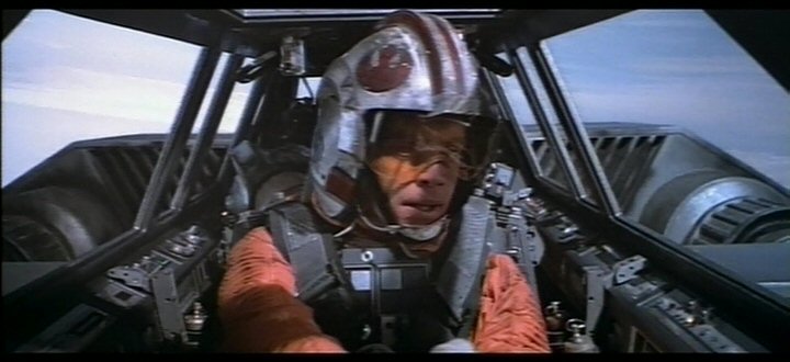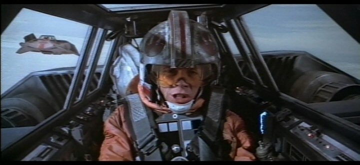 Rogue Leader cockpit. Luke still appears to be flying parallel to Zev. |