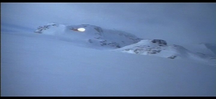 Luke spots the Millennium Falcon flying in a direction away from the sun.