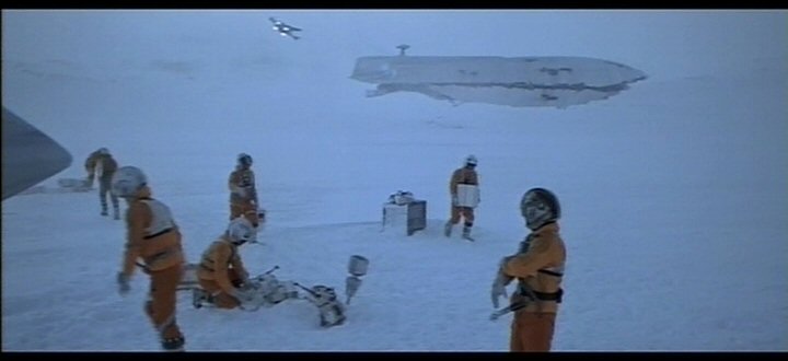 Luke Skywalker's X-wing departs Hoth.