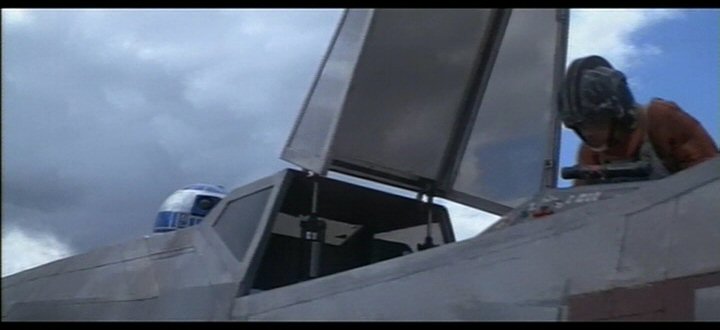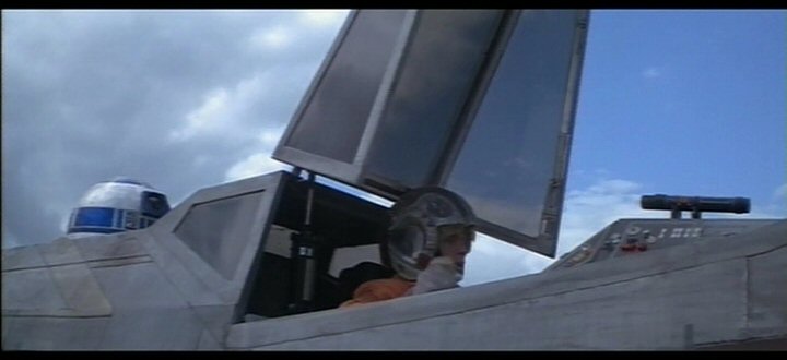 Luke Skywalker enters his fighter's cockpit and initiates launch.