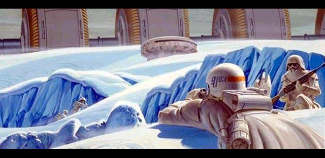 Images of some of the landscape paintings used to portray the Hoth battlefield.