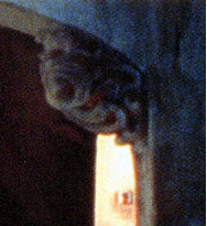 Similar spiral flask near the pillar between booths 2 and 3 (counting away from the main entrance). In the first image the vessel is in Amanaman's right hand, near Bubo's rump. [Behing the Magic]