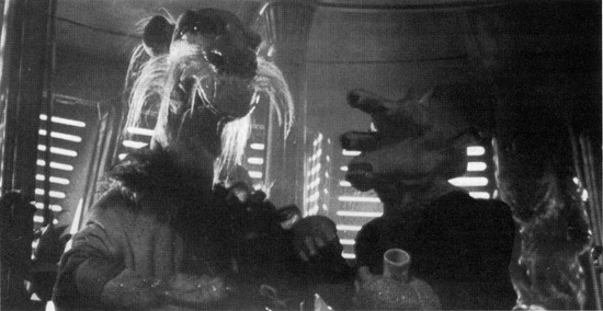 The second distinguishable gargoyle is the head of an Ishi Tib of indeterminate age and sex. This person may have been a special favourite of the Hutt. The Ishi Tib who rode with the sail barge on its last journey to Carkoon was probably not the one honoured with the sculpture. He did not appear to command so much attention or esteem.