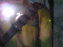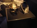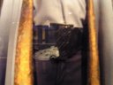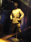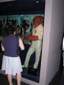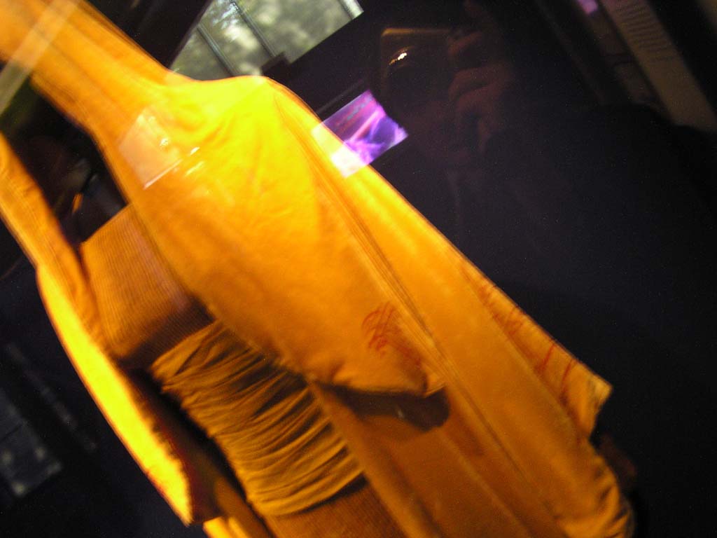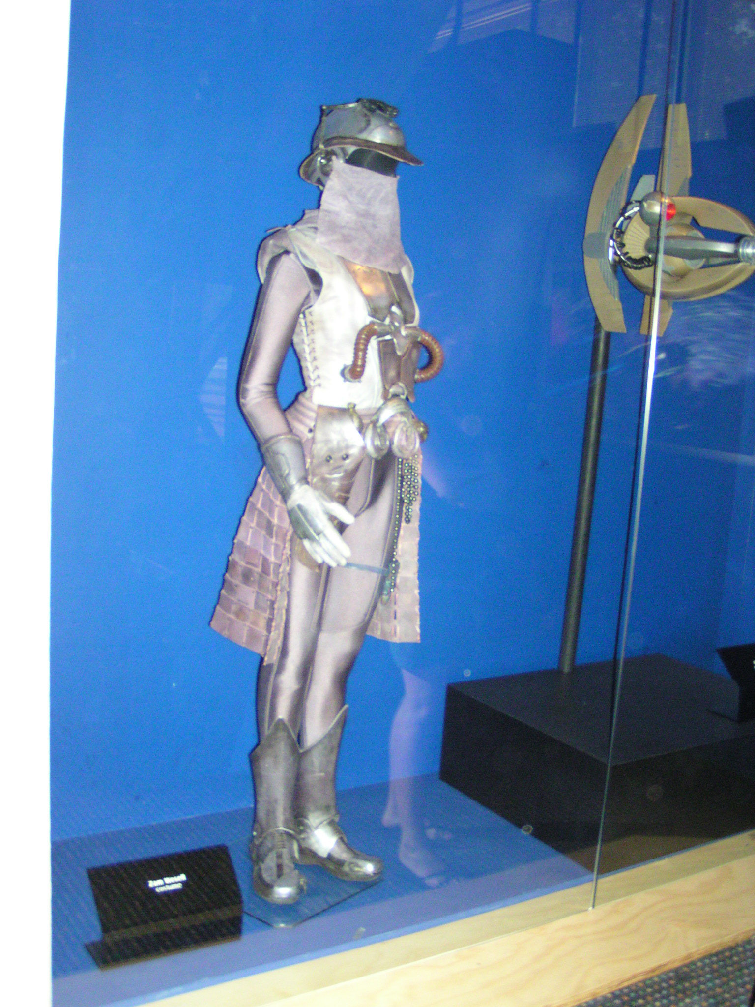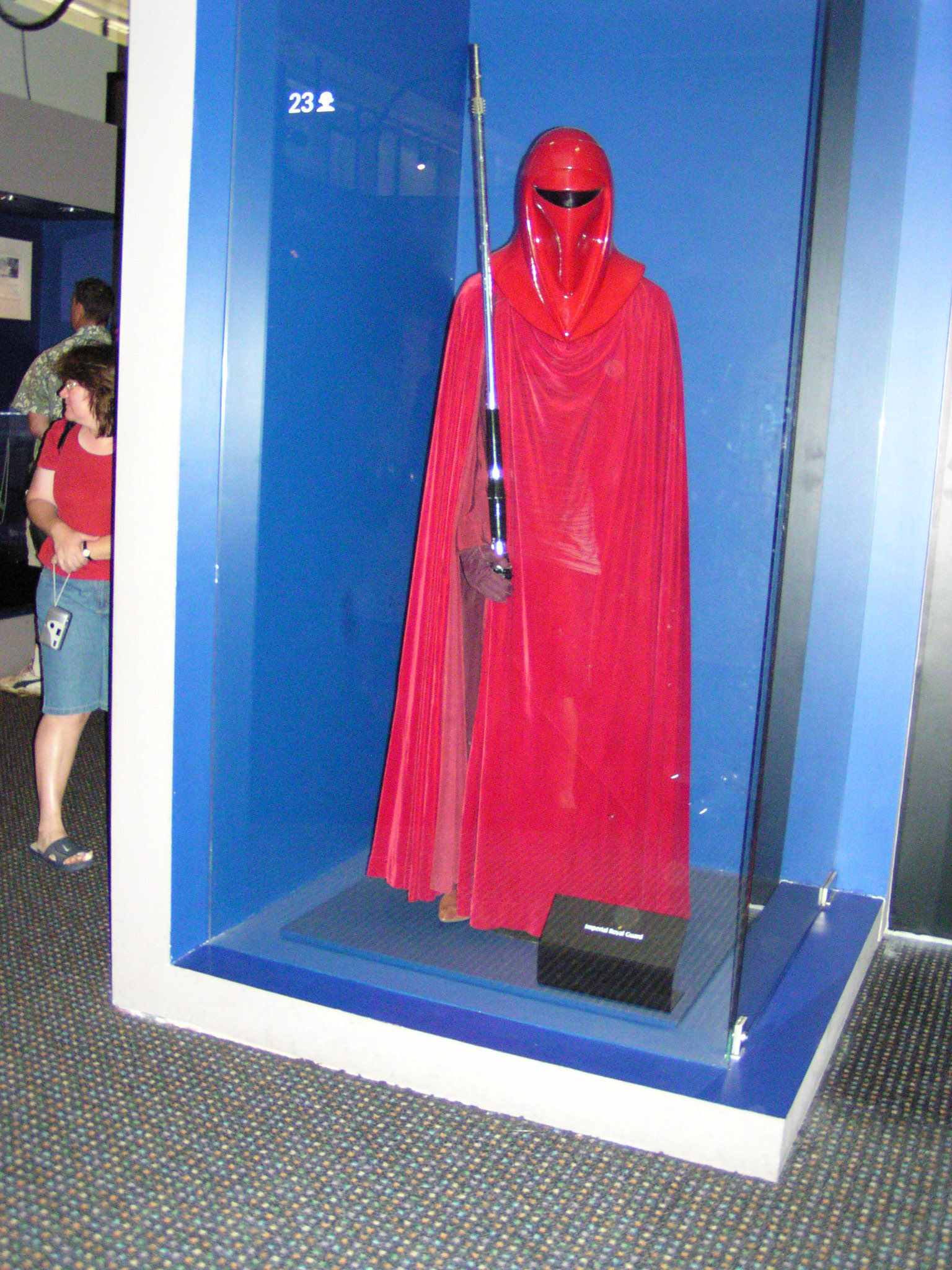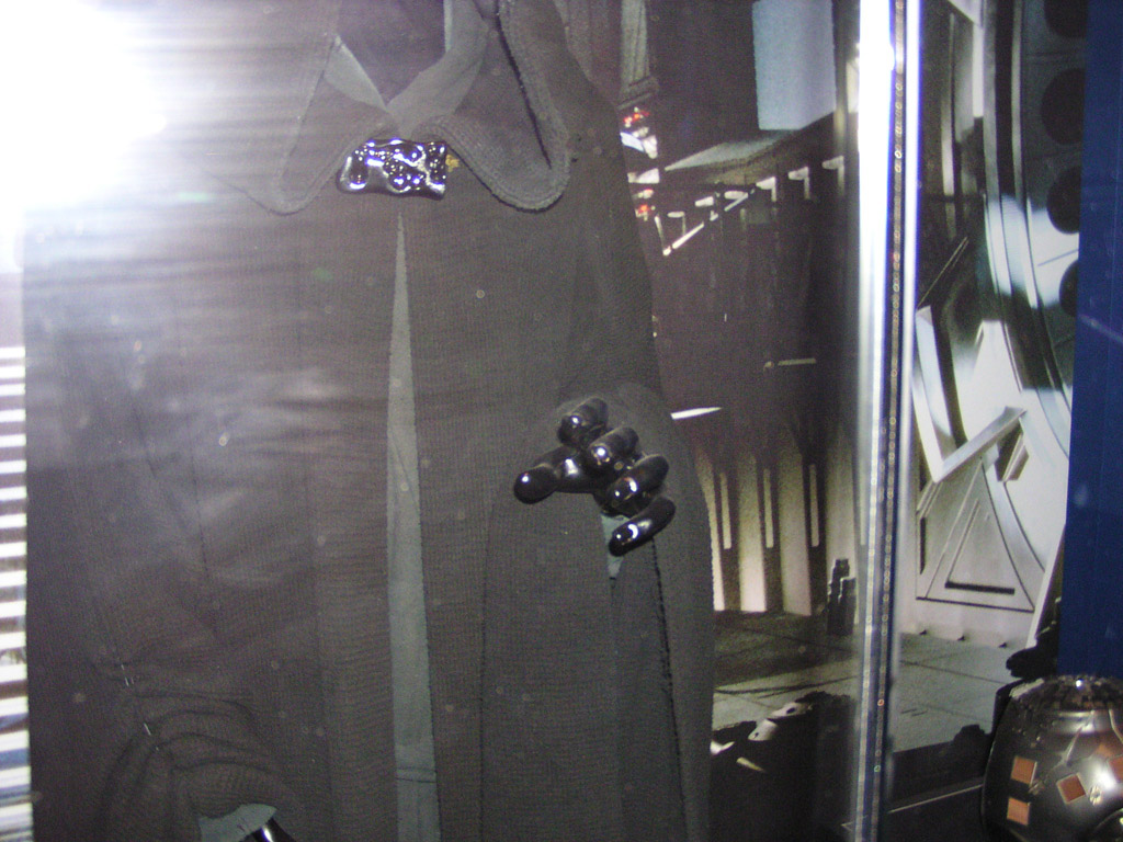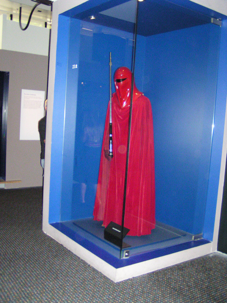 Left side of the Imperial guard costume. The cloak appears bluer than the helmet. Is this an effect of aging, or is it an illusion caused by scattering of blue background light on the fibres? [Jan 2003] |