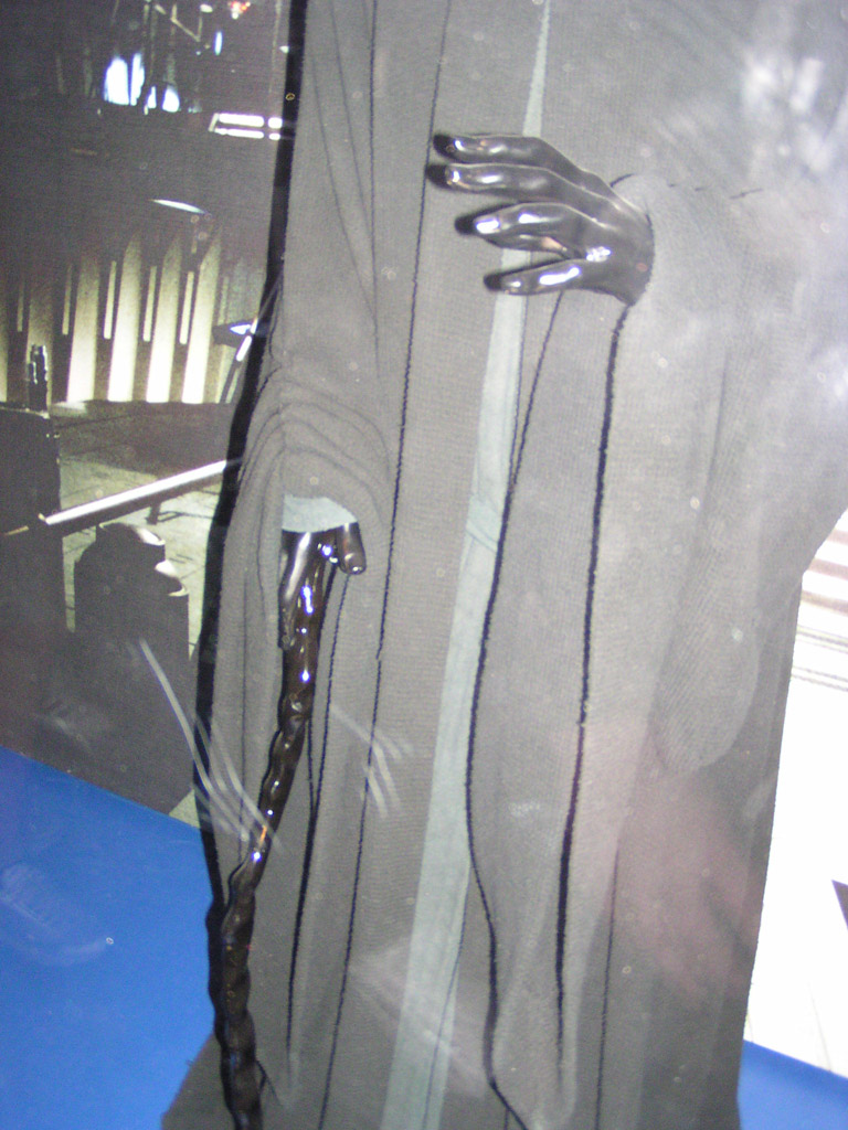 Middle and lower areas of Emperor Palpatine's robes. The cuffs of the outer cloak are long; they might almost drag on the ground and the Emperor walks. The Emperor's black, apparently obsidian cane is held at his right hand. [Jan 2003] |