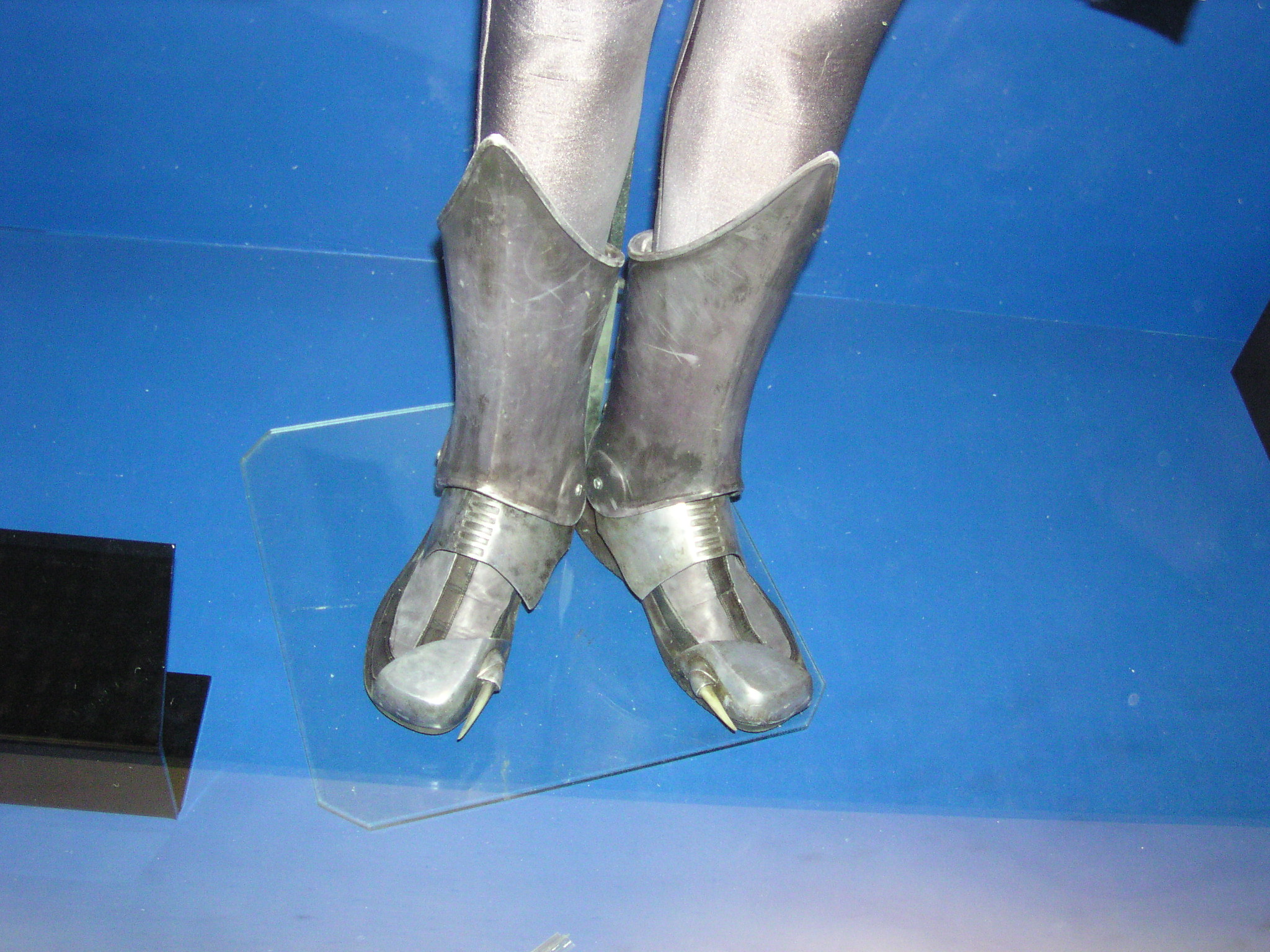 Details of Wessel's armoured boots and unarmoured lower stockings. What is the purpose of the spikes near her inner toes? Are they weapons for kicking attacks, or are they a kind of spur for riding beasts? [Jan 2003] |