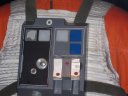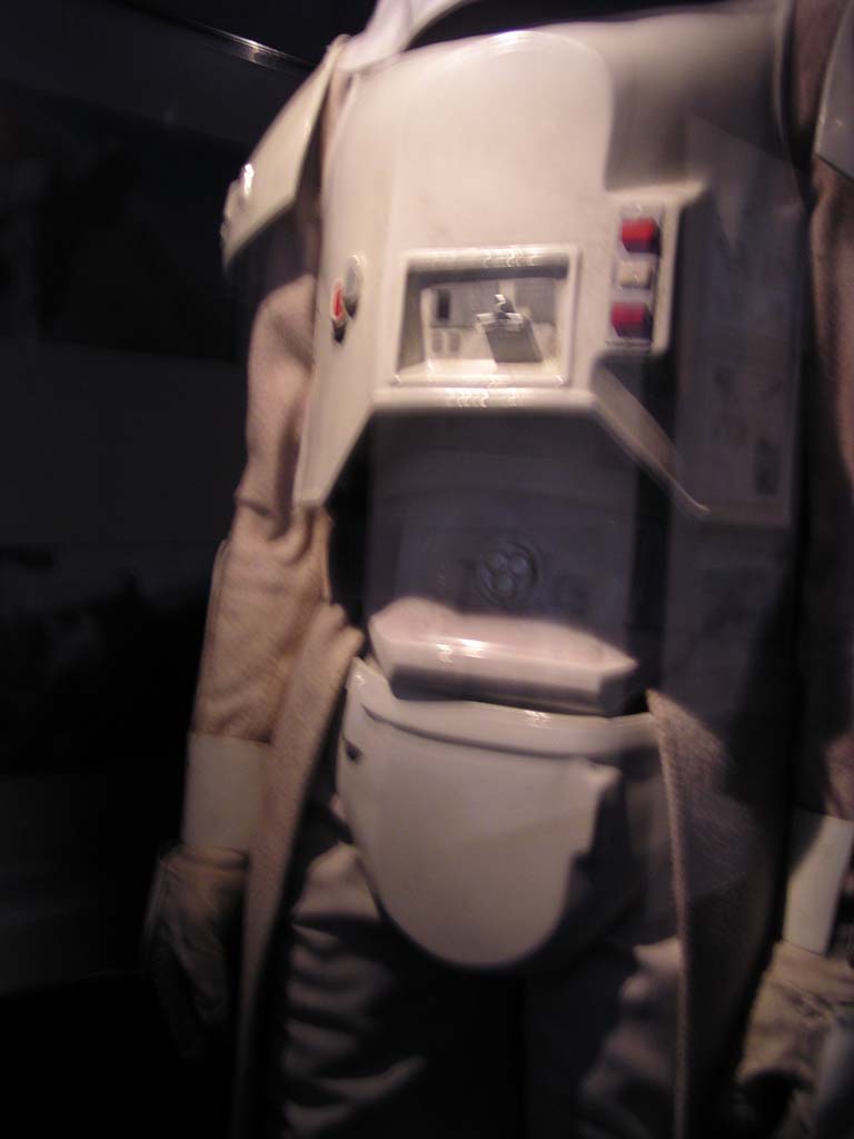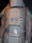 Closeup of the chest area of a TIE pilot uniform. Some of the buttons on this box resemble buttons on the chest box worn by rebel pilots. These devices probably have something to do with air supply and air scrubbing (although the rebel uniform is not air-tight). |