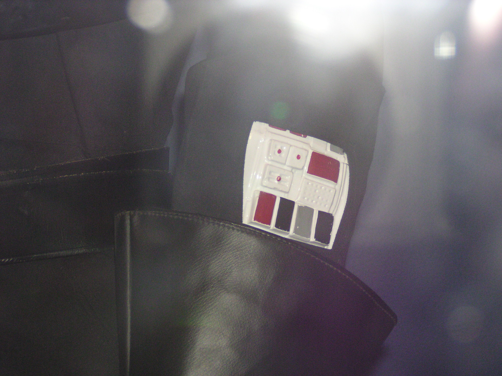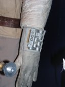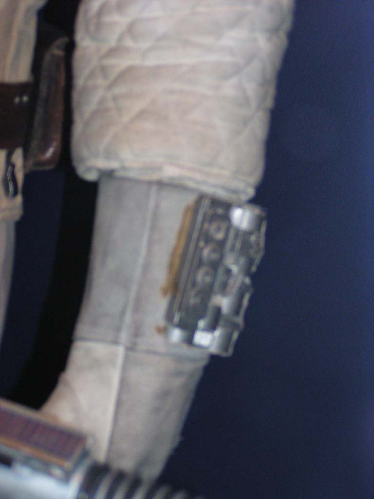 An intriguing array of switches on the sleeve of the TIE pilot uniform. Do they affect the functioning of the flight suit, for instance the air seal? Or do they have something to do with the pilot's duties: communications gear etc? Rebel pilots have a similar device on their sleeves. |