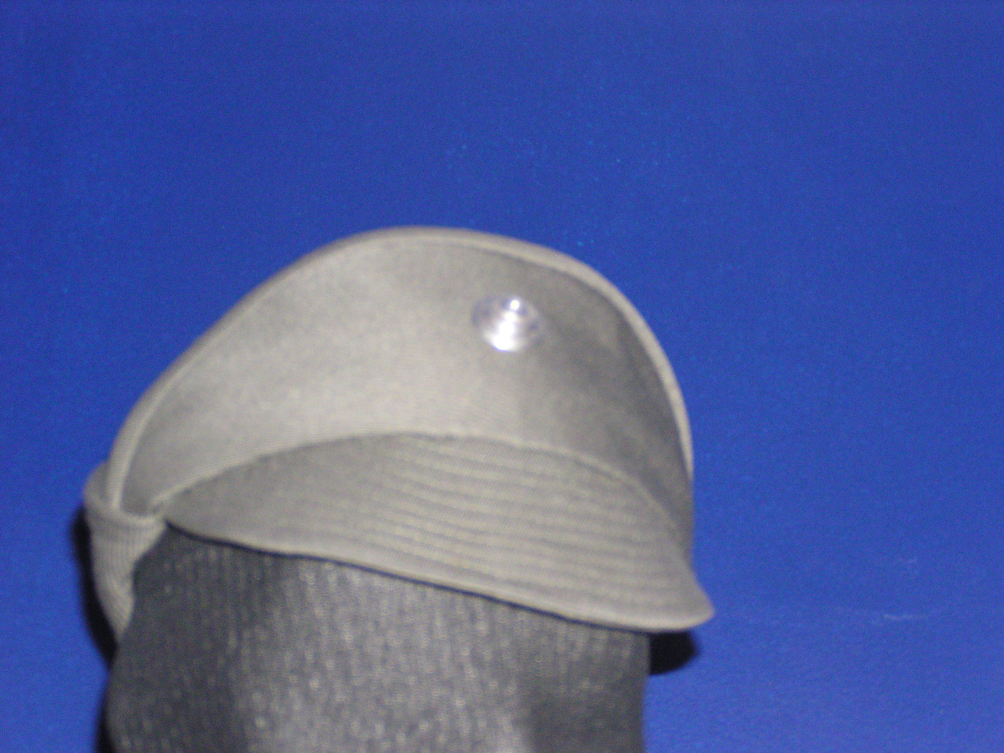 Imperial officer cap. The button is axially symmetric with stacked cylindrical blocks of three different radii. |