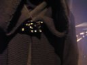 Middle and upper areas of Emperor Palpatine's robes worn during the Battle of Endor. What is the yellow feature appearing to the right of the hood clasp? The inner garments appear to be a smoother fabric than the outer cloak. [Jan 2003] |