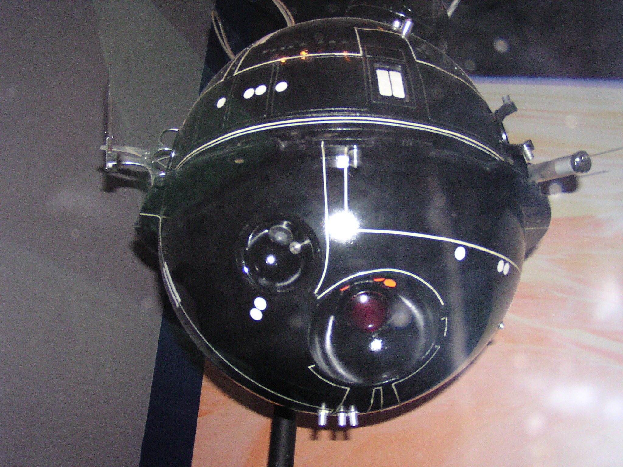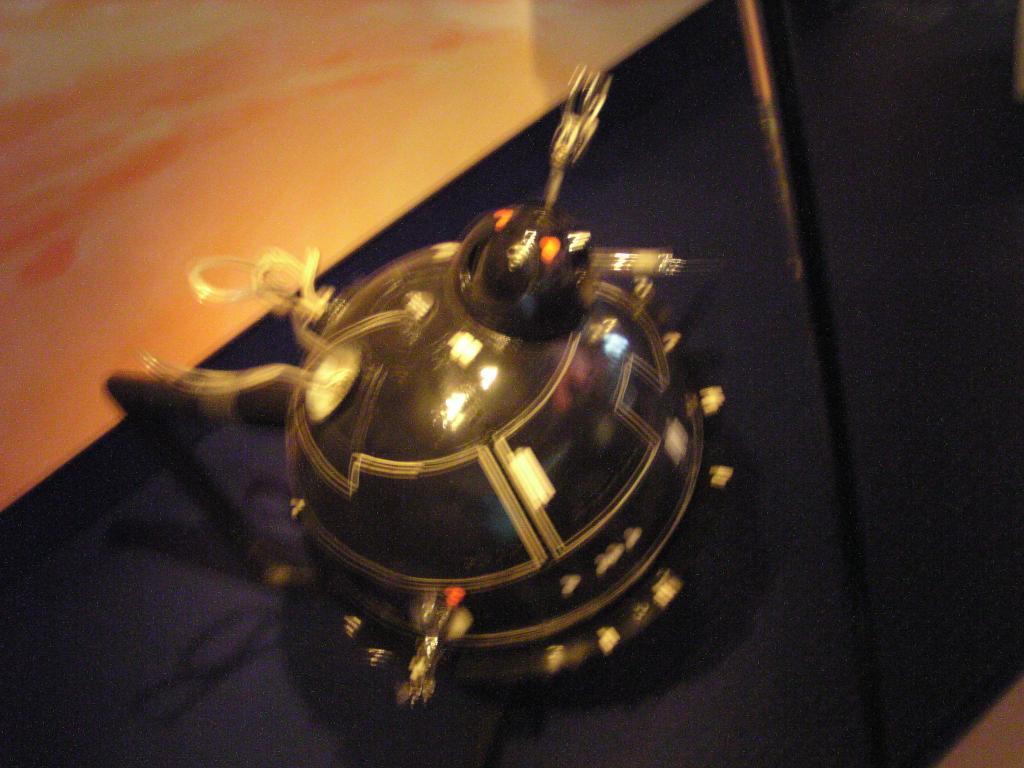 Front underside of the interrogator droid. The two dish-like pits contain some obviously important devices. Are they sensors (including photoreceptors) or are they designed to emit beams of something into the subject? The differences between the fittings of the two dishes suggests that they serve different functions, whatever they may be. |