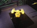 Frontal views from above the midplane of the Y-wing fighter. The general features of the ion thrust vectrals and rings are visible against the blue background. [16:41 21 Dec 2002] |